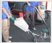 使用多功能洗地机、吸尘吸水机、蒸汽机、风干机等专业设备,结合专用清洗剂、除污保养剂,对地毯进行全面的清洗和处理。其工艺包括:洗地机泡沫清洗除污、吸水机吸污水、风干、蒸汽杀螨虫、杀菌、梳理,最后用防污喷剂处理,使地毯表面形成防污薄膜,达到减缓再次污染的效果。由于地毯的质地和制作工艺各不相同,针对不同的地毯,采用的处理方式也不尽相同。